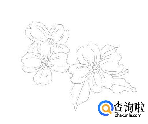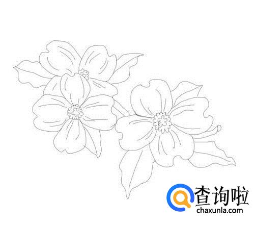 最后再画出茱萸花的花茎,然后再画出茱萸花的叶子,这样我们的茱萸花就画好了,如图所示: