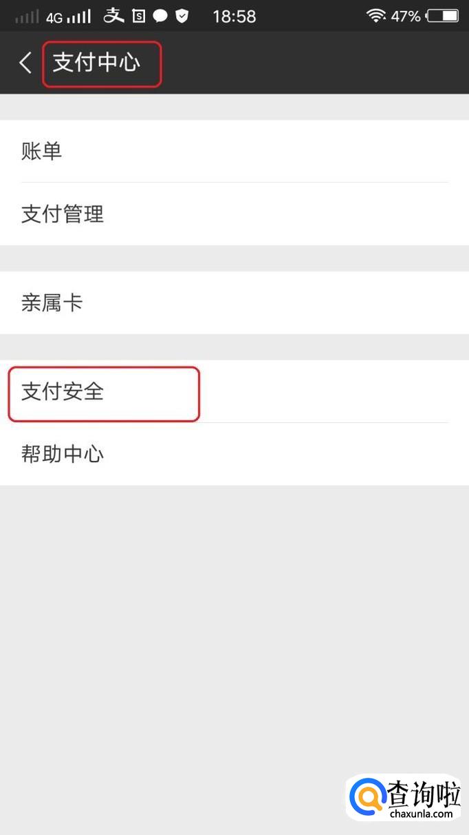 然后,如图所示,我们点击右上角图标,进入“支付中心”,然后,我们点击“支付安全”。