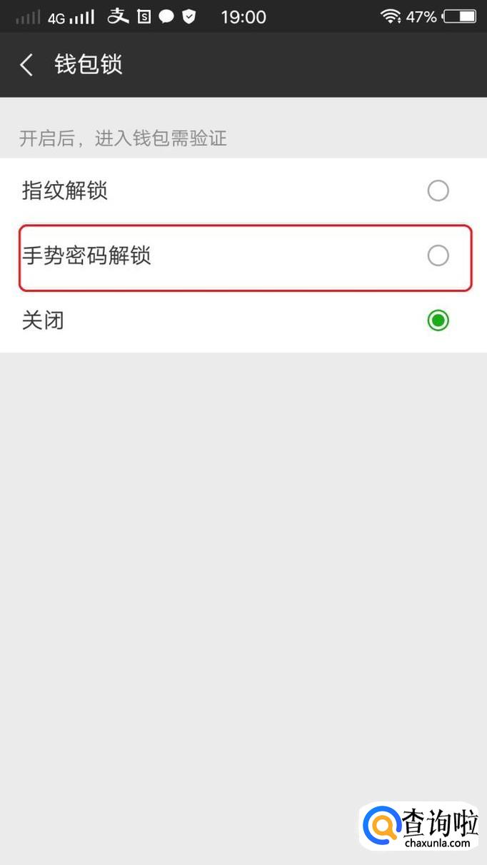 可以看到,钱包锁有“手势密码解锁”选项,我们选择一下,需要输入支付密码。