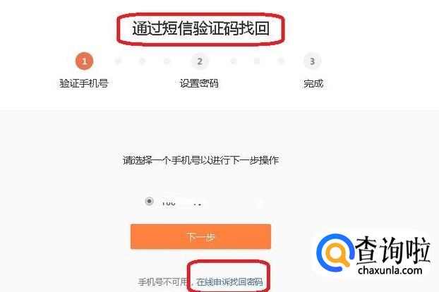 如图所示,如果手机号没问题,就可以通过验证码找回密码(重新设置密码)了,如果手机号不对,我们还可以点击下面“在线申诉找回密码”。