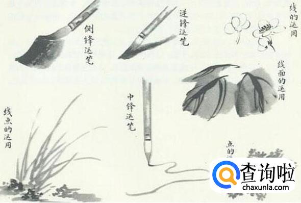 侧锋:笔管倾斜,笔锋侧卧一边,画出的线条一边光一边枯;