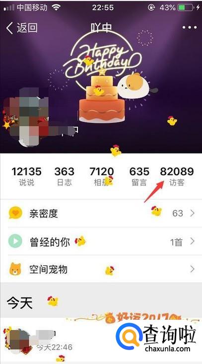 进入到好友的空间后会看到最右边有一个访客的入口。