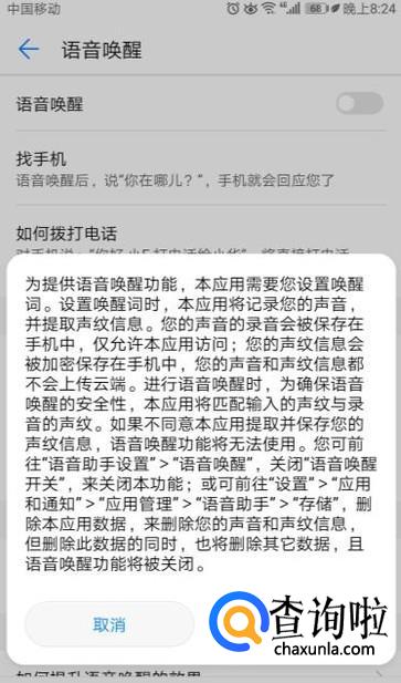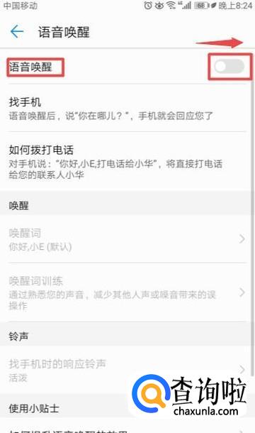 然后我们将语音唤醒的开关向右滑动;