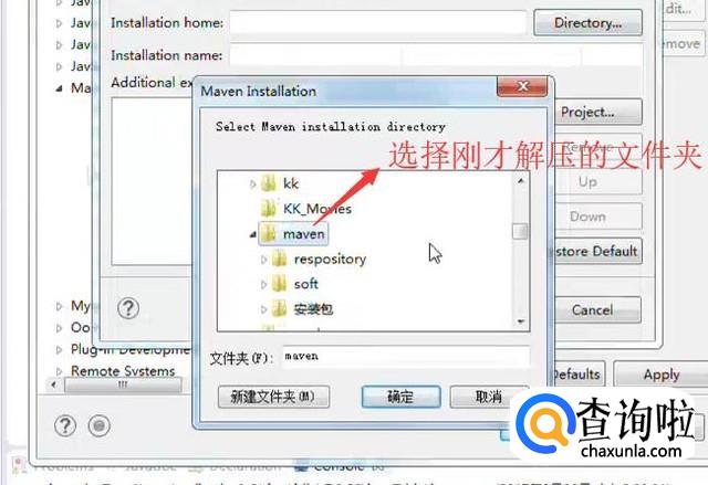 然后会弹出maven文件夹选择界面,这里我们选择刚才解压的maven文件夹即可,如下图所示