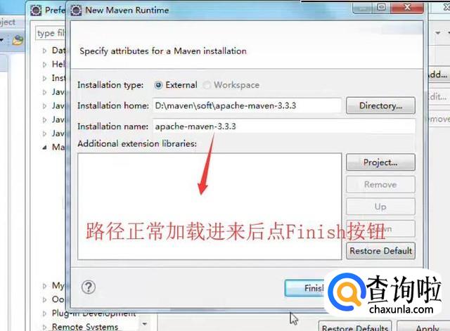 回到New Maven Runtime界面中,等到路径都加载进来了我们就可以点击Finish按钮,如下图所示