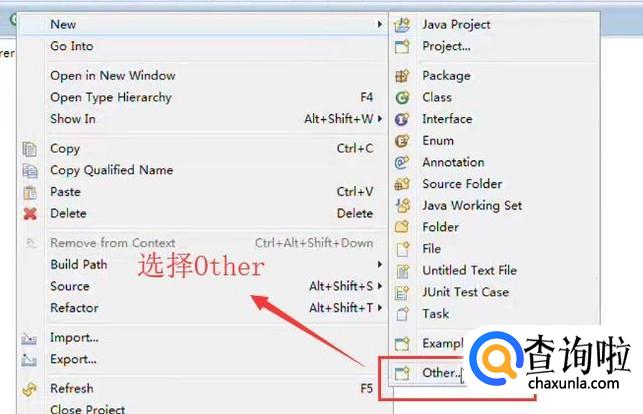 接下来我们就可以在左侧项目空白处右键单击选择New下面的Other选项,如下图所示
