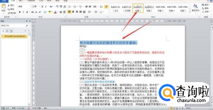 你也可以通过视图选项卡的显示功能组勾选导航窗格来检查自己的设计标题是否有误,其中一级长度最长,二级仅此以此类推。