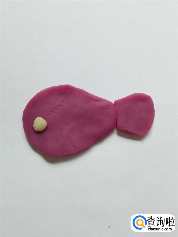 用紫色捏一个梯形,当作鱼的尾巴。