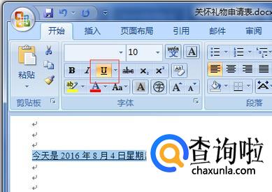 word开始标签下,有一个U下面有一个横线,点击就可以对你选中的文字添加下划线。(快捷键Ctrl+U)