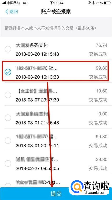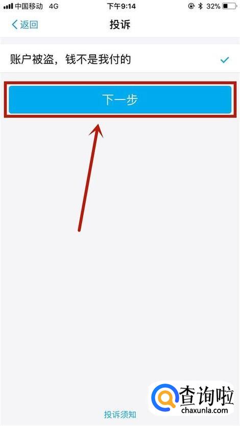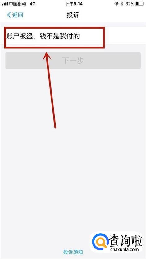 接着点击账户被盗,钱不是我付的,如下图所示。