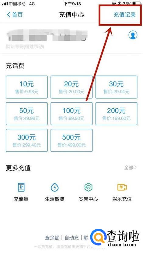 然后点击充值记录,如下图所示。