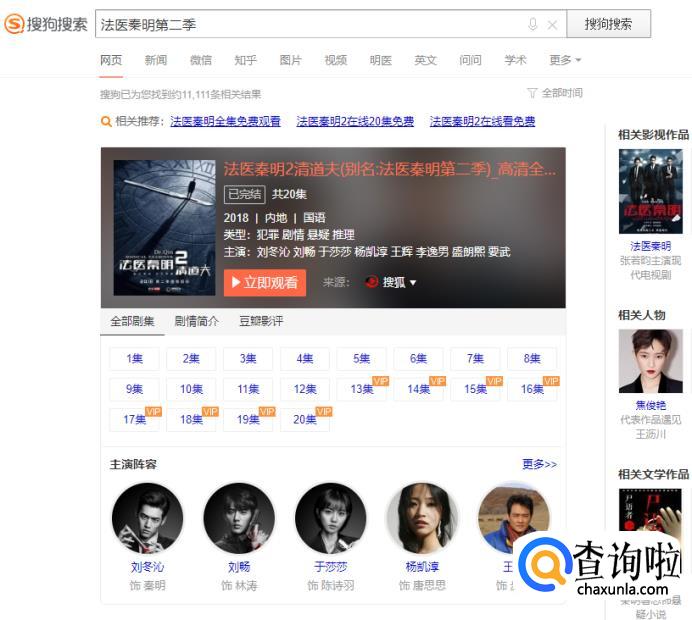 如果想要观看第二季,操作方法同上,在搜索引擎中搜索“法医秦明第二季”。