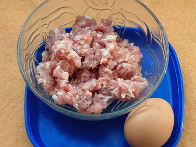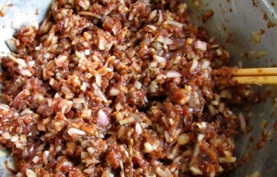 1、选取新鲜的猪肉。肥瘦比例为7:3,瘦的占七成肥的三成。最好用刀剁的方法来切碎肉,这样能够保持纤维的完整,口感比较好。