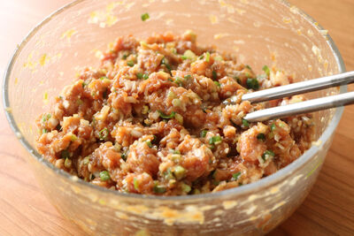 猪肉饺子馅想要做的好吃首先需要选取新鲜的猪肉,肥瘦比例为7:3,用刀剁的方法来切碎肉。然后加入葱姜和一个鸡蛋,用筷子顺一个方向搅拌。泡一些花椒水,每次加一到两小勺,然后顺一个方向搅拌肉馅。之后放适量的盐,然后加入十三香调料。最后加适量的油油能够锁住肉的水分,让肉馅口感更加鲜嫩。