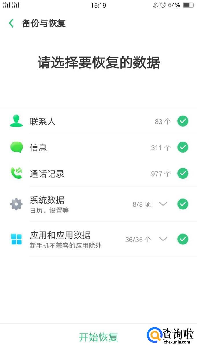 扫描完成后,你只需要将想要恢复的数据打钩就可以逐步恢复到你的手机上哦。