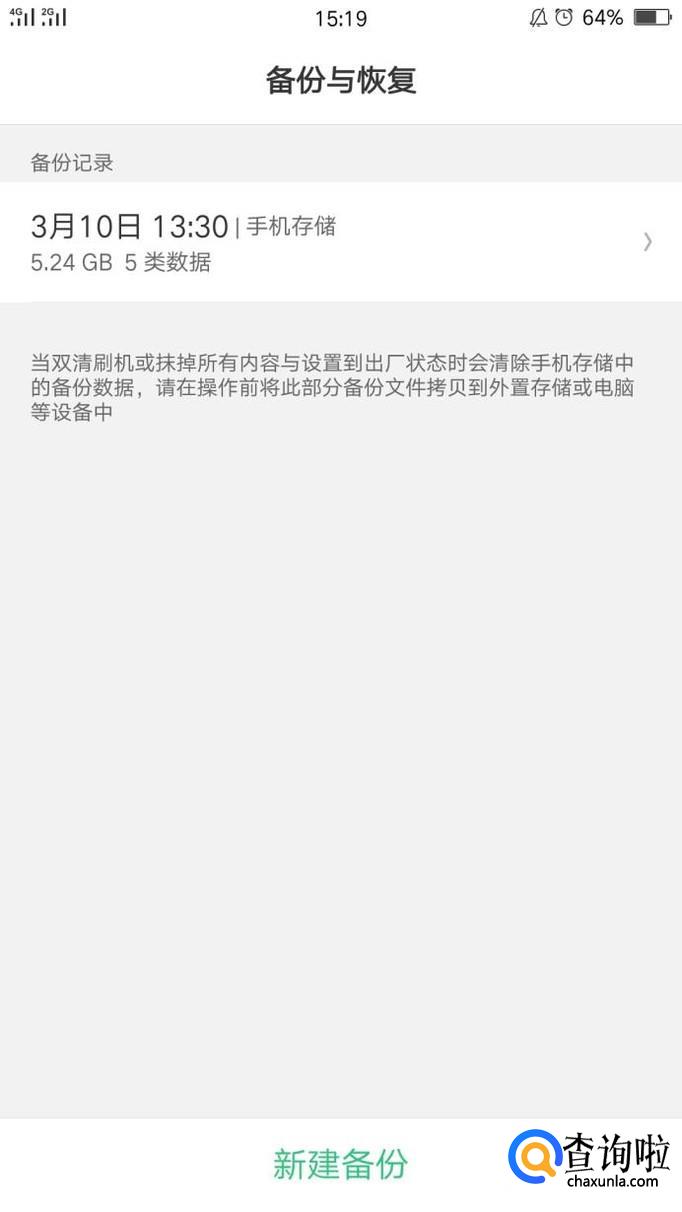 打开手机上的备份与恢复,你就会看到之前备份的数据,我是3.10号备份的,所以显示的就是最近的3.10号数据。