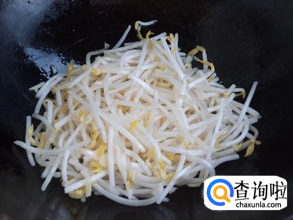 然后将沥干的绿豆芽导入锅中爆炒30秒钟。