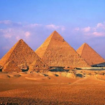 胡夫金字塔建于埃及第四王朝第二位法老胡夫统治时期(约公元前2670年),被认为是胡夫为自己修建的陵墓。在古埃及,每位法老从登基之日起,即着手为自己修筑陵墓,以求死后超度为神。胡夫大金字塔的4个斜面正对东、南、西、北四方,误差不超过圆弧的3分,底边原长230米,由于塔外层石灰石脱落,现在底边减短为227米,倾角为51°52′。塔原高146.59米,因顶端剥落,现高136.5米,相当于一座40层摩天大楼,塔底面呈正方形。整个金字塔建筑在一块巨大的凸形岩石上,占地约52900平方米,体积约260万立方米。它的四边正对着东南西北四个方向。