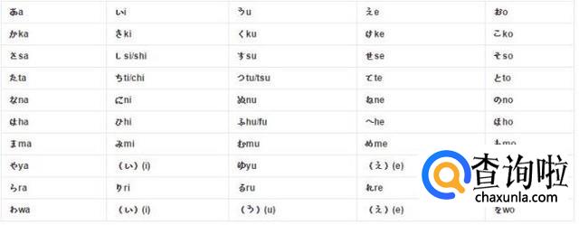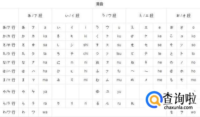 以下是罗马字组成的五十音图(清音)。