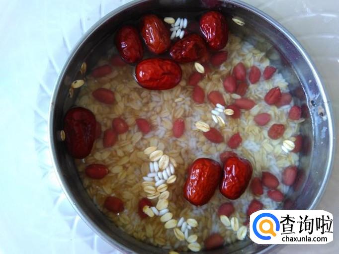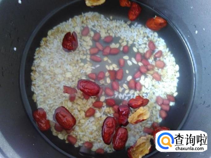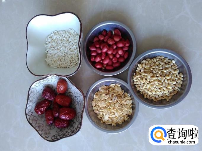 糯米、红枣、红皮花生、燕麦、糯薏米准备好。