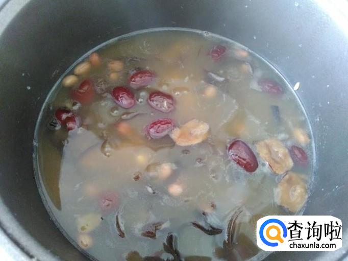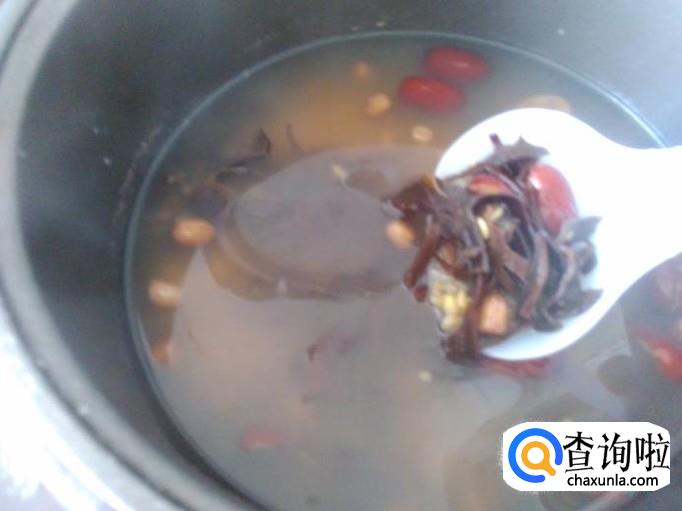 木耳30克,红皮花生30克,红枣20克,燕麦30克,糯薏米30克,糯米30克,土红糖适量。
