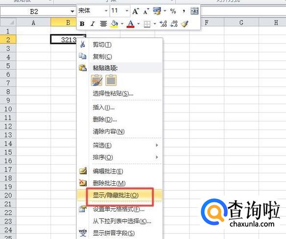 然后我们右击插入批注的这个单元格,然后右击选择显示/隐藏批注;