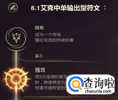 这个英雄的符文上一定要选择精密的强攻,这是爆发最高的剩下的点出凯旋韧性和致命一击。在副系的选择上有多样化,对面ap多就选择无效化法球和迅捷。