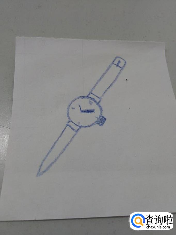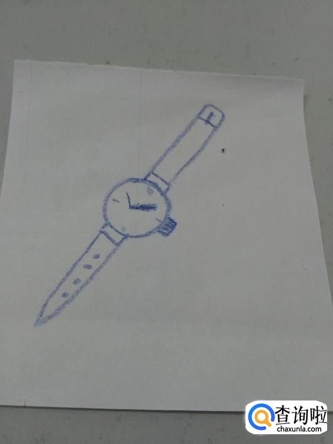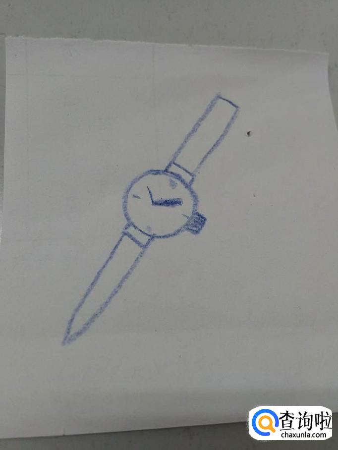 在长方形上面,再画一个小方块,在小方块里面画一条短线,表示手表的卡子。