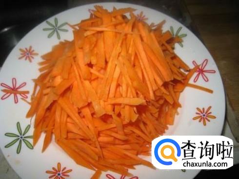 最后,再将胡萝卜切成丝。