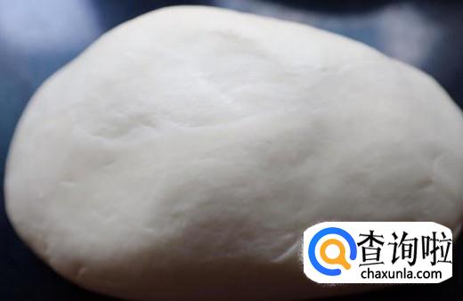 将面粉、水、发酵粉倒入盆里,然后揉搓,揉成一个光滑的面团。