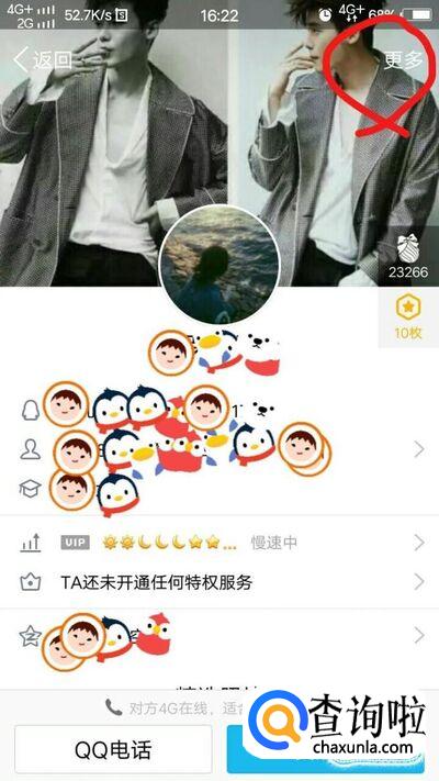 然后,在她的资料页面点击右上角的“更多”,在那里可以进行很多设置。