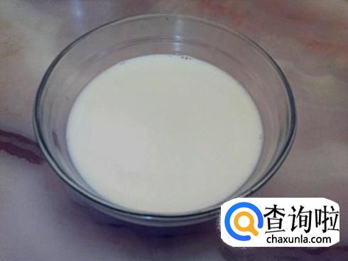 把牛奶放煮锅里,熬煮上2分种,再倒入碗里。