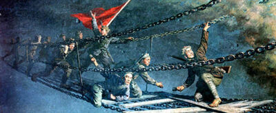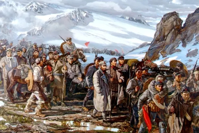 中国红军长征,指中国工农红军主力从长江以南各革命根据地向陕甘革命根据地会合的战略转移。红军长征时间是1934年10月,第五次反“围剿”失败后,中央主力红军为摆脱国民党军队的包围追击,被迫实行战略性转移,退出中央根据地,进行长征。1936年10月,红二、四方面军到达甘肃会宁地区,同红一方面军会师。红军三大主力会师,标志着万里长征的胜利结束。