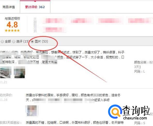 在选择买某一件衣服的时候,还要看下别人的评价,主要是看【差评、中评、追评】这些会比较真实,然后看下网友上传的图片,是否跟实际差太多。