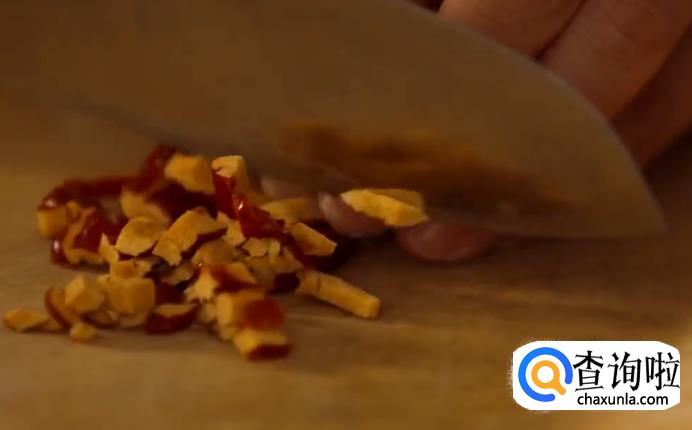 这时来准备配料,冬瓜条和去核的红枣切碎。