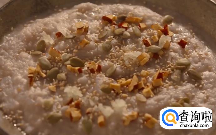 接着将蒸好的芋泥取出,把切碎的冬瓜条和红枣撒在上面,再撒上芝麻和瓜子仁就做好啦。