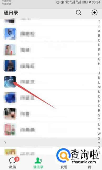 先点击一个想要拉黑的好友;
