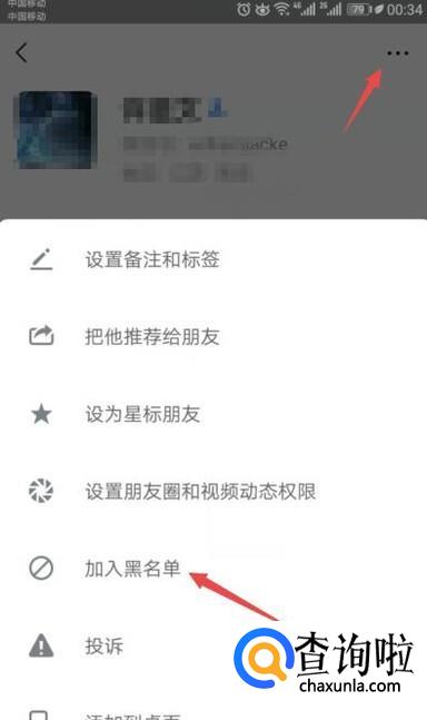 然后点击右上角的设置按钮,之后点击加入黑名单;