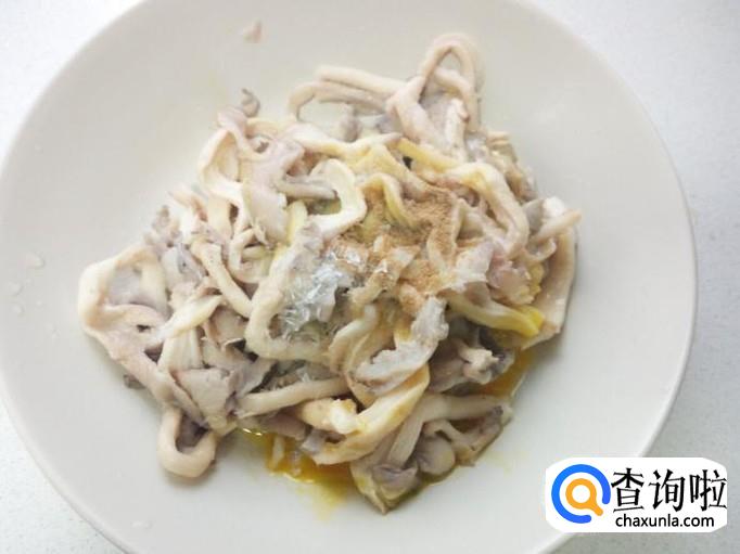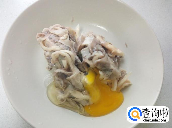 打入一个鸡蛋,放入五香粉,盐,味精,少许料酒,拌和均匀。