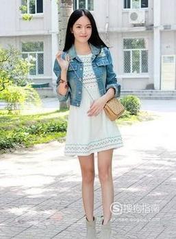 连衣裙。天气有点凉爽又想要穿飘逸的连衣裙,就用牛仔外套搭配连衣裙吧。