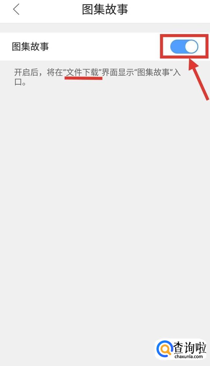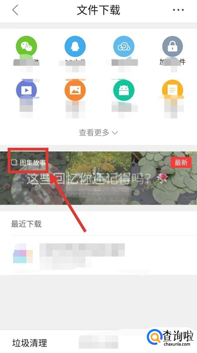 开启图集故事这个功能之后,根据它的提示,图集故事这个功能在文件下载里面。