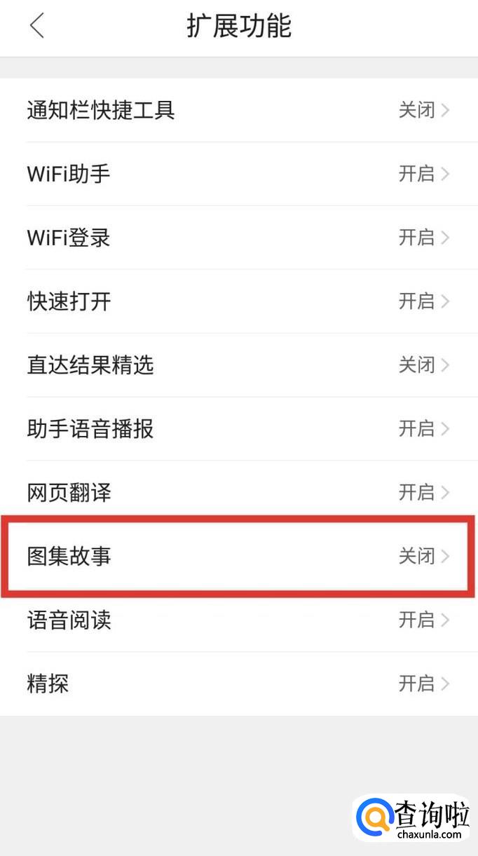 在扩展功能中可以看到图集故事是否开启,如果开启了就不用再开启了,如果是如图所示关闭状态,则需要点进去开启。