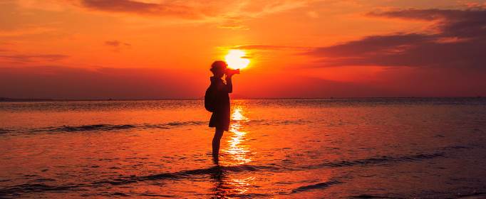 2、日落沧海看夕阳,万丈霞光谱辉煌。轻叹美景难留住,只因月色要锋芒!