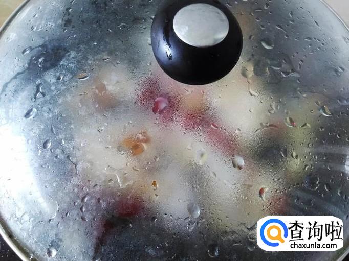 再加姜片、枸杞、红枣盖上盖子大火煮沸转小火炖。