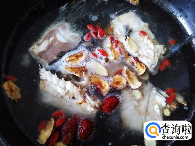 鱼骨斩成一块块,姜片、枸杞、红枣准备好。