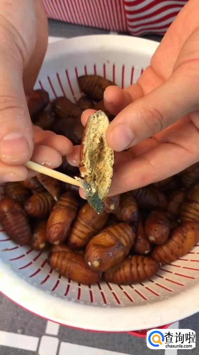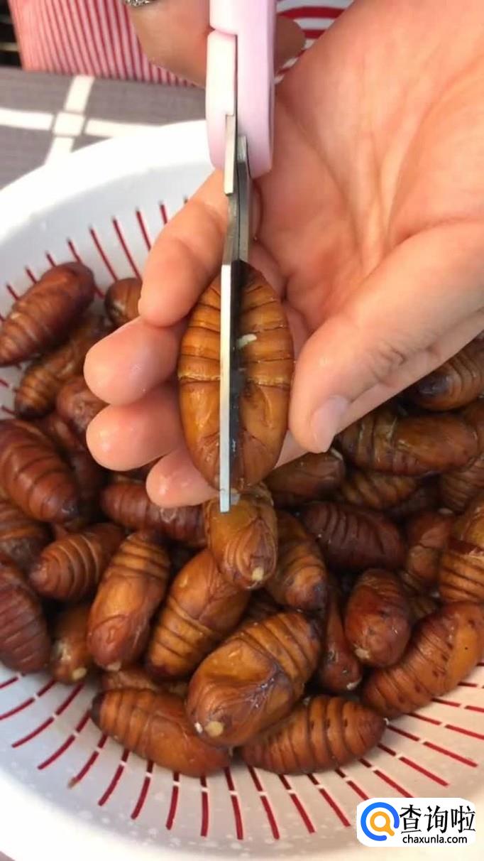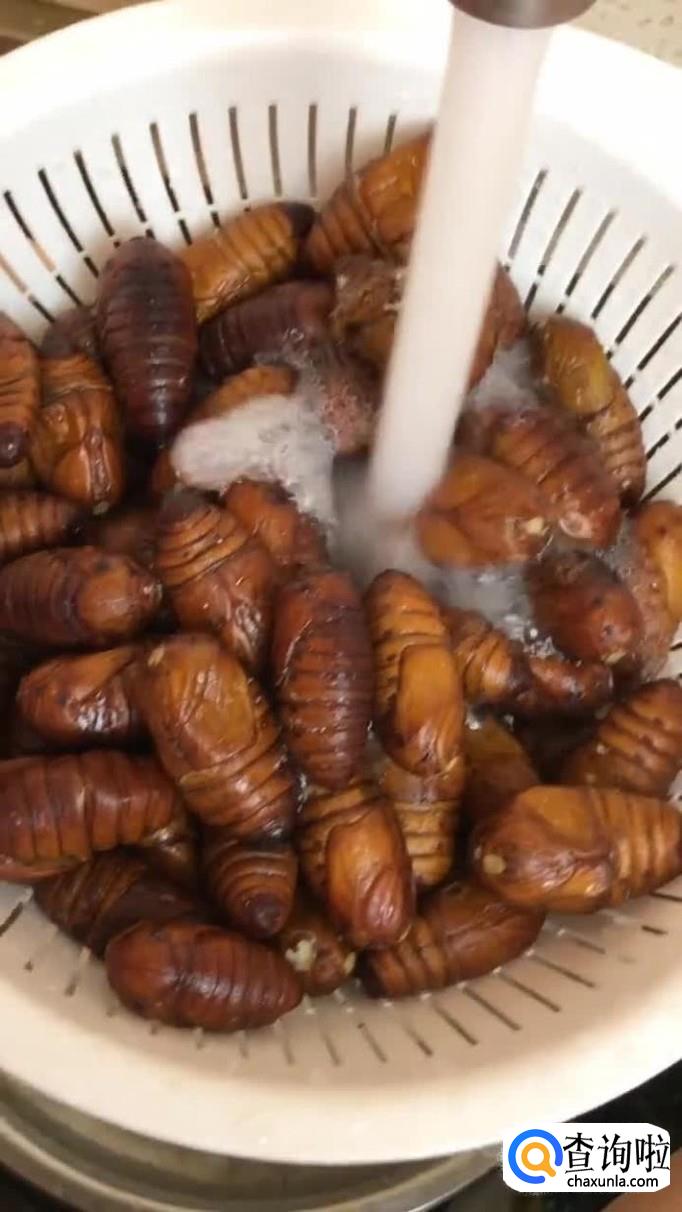 然后把蚕蛹捞出,用清水冲洗干净,如下图所示。