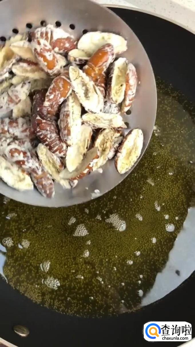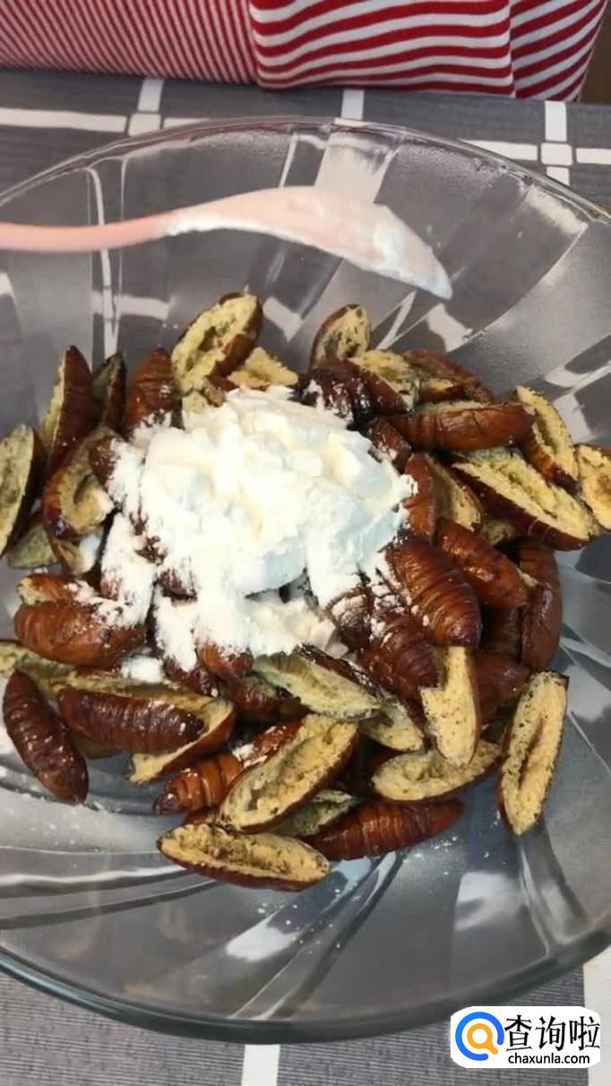 然后用适量的油炸粉把蚕蛹裹一下,如下图所示。