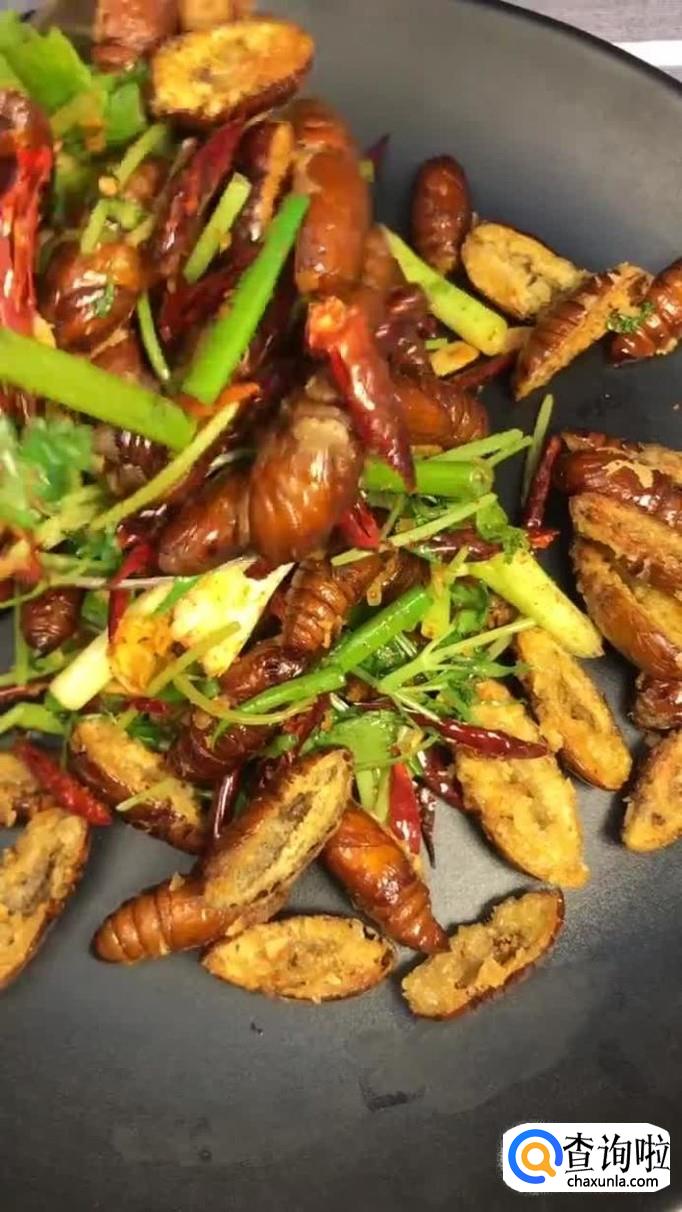 一道美味可口的炒蚕蛹就做好了,希望大家能够喜欢。