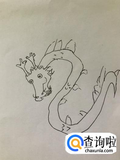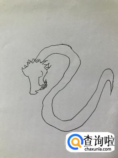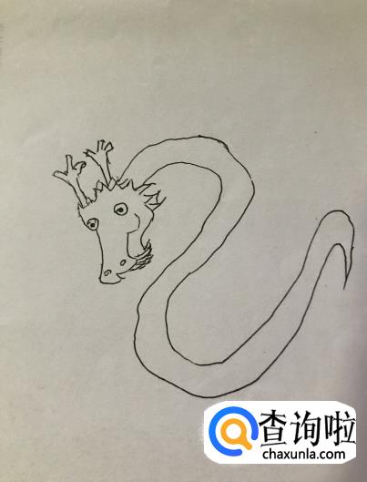 身体:接着我们刚画好的头部,画出龙弯曲的身体,呈s形变化逐渐变细。