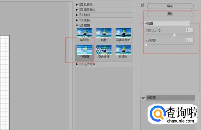 接下来,我们给新建的图层添加拼缀图滤镜效果,参数如图所示。
